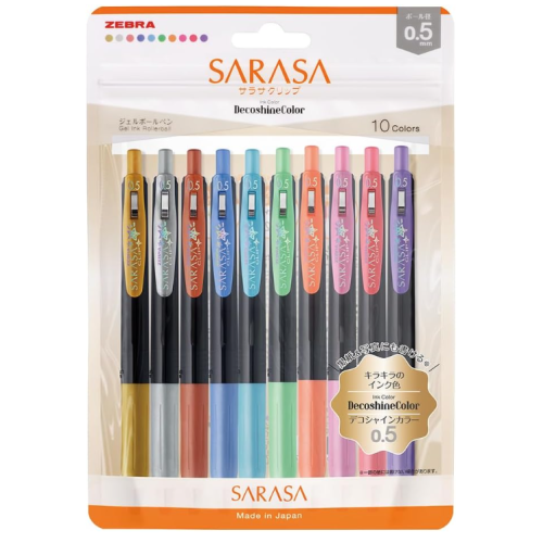 검은 종이나 짙은 색감의 종이에도 깨끗하게 발색되는 데코 샤인 컬러펜