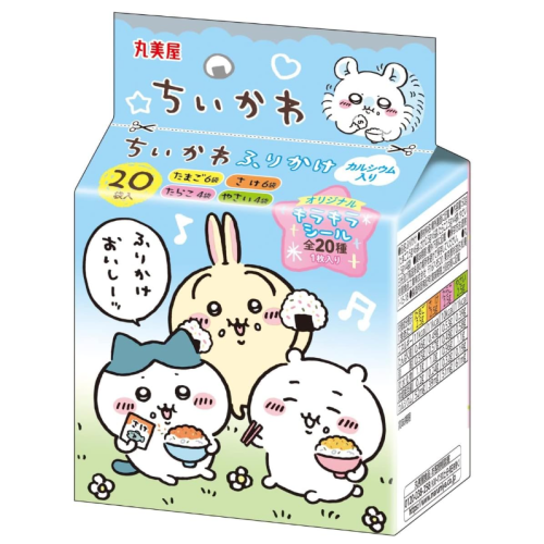 계란,연어,명란젓,야채맛 후리카케,귀여운 반짝이 스티커가 들어있어요